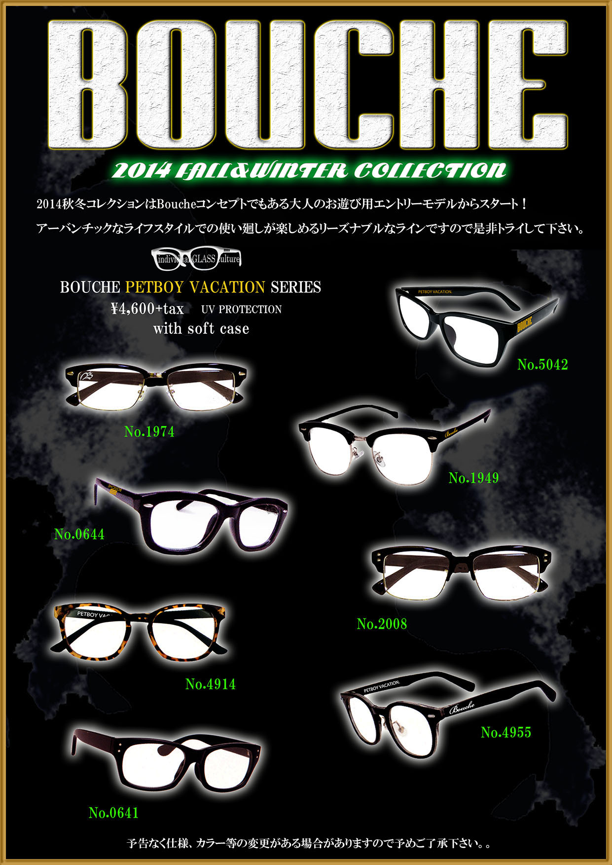 BOUCHE EYE WEARからPETBOY VACATIONエントリーモデルシリーズ限定発売開始!